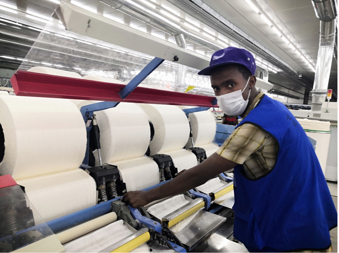 “我們工廠去年10月16日才正式投產,很多員工都還在努力適應新的工作環境和工藝技術。雖然忙碌,但是有中國師傅耐心的教導,我們都收獲很多,相處得也非常愉快。沒想到會遇上新冠肺炎疫情,而且發展得這么快。”無錫一棉埃塞俄比亞工廠(簡稱“一棉”)紡紗車間助理姬發回想起年初剛遭遇疫情時的狀況,就打開了話匣子。